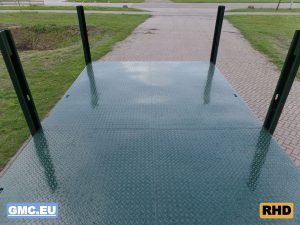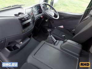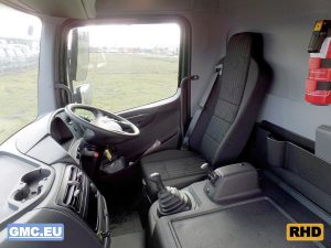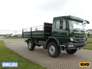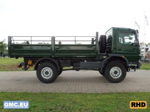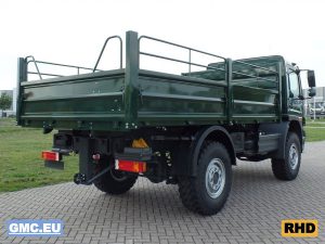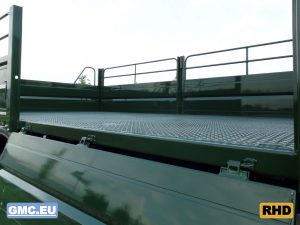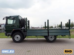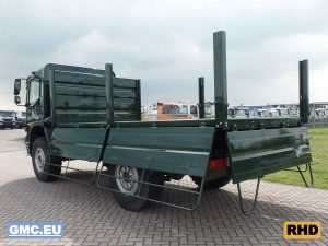 Equipped with flatbed with drop sides.